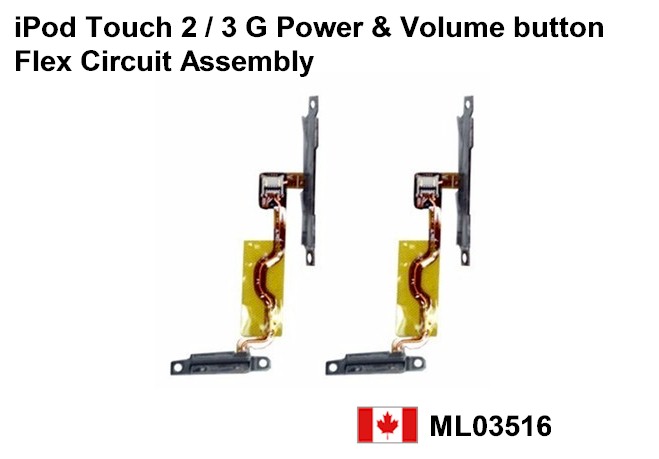 Item Description: * iPod Touch 2/3 Gen Power & Volume button Flex Circuit Assembly * OEM, NEW , item come with metal frame on it and assembled * Compatible with iPod Touch 2nd and 3rd Gen Generation Package Included: 1 x iPod Touch 2/3 Gen Power & Volume button Flex Circuit Assembly < metal plate with flex > 1x IPhone Pry Tool Set for opening your ipod